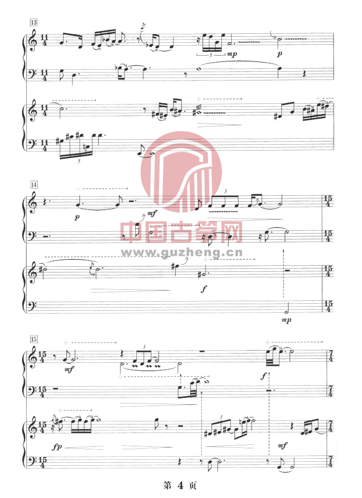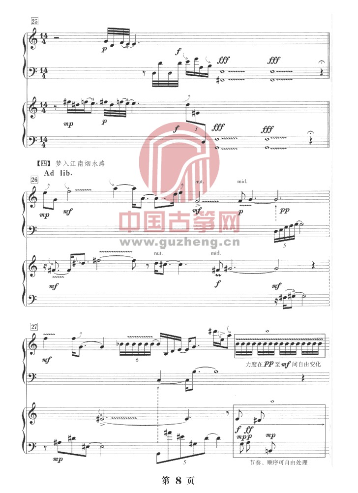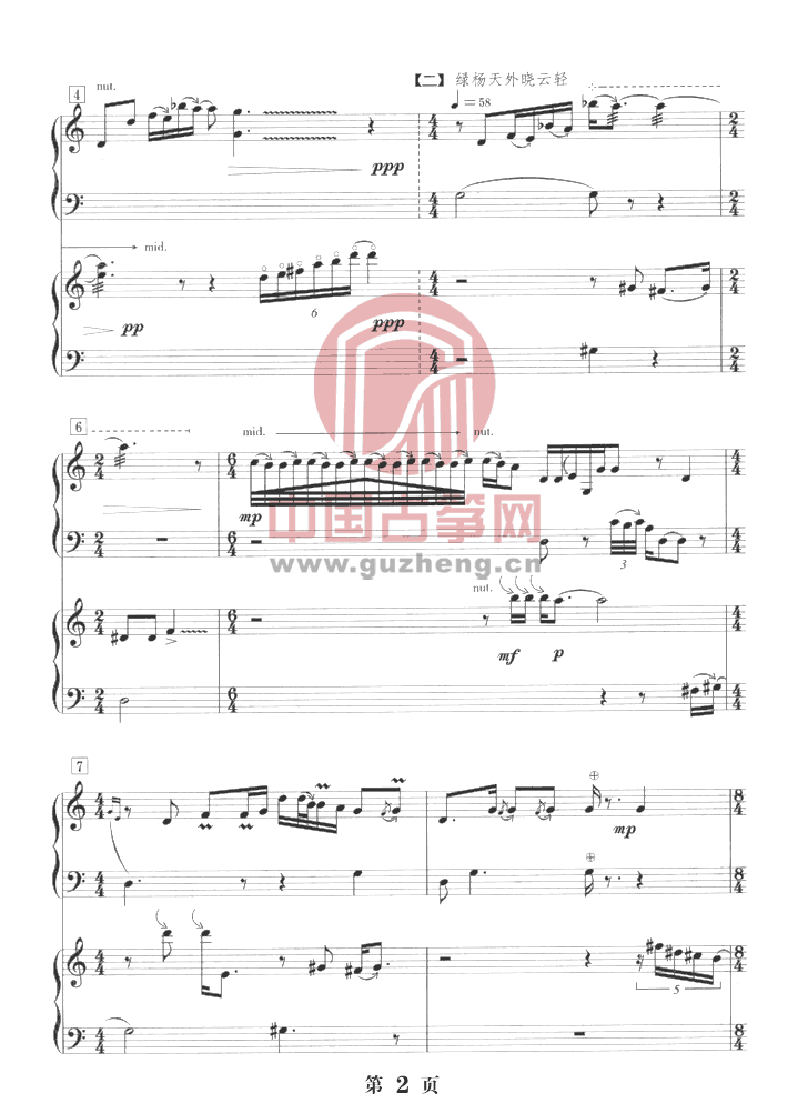 水墨淡彩——两架古筝的对话(五线谱)