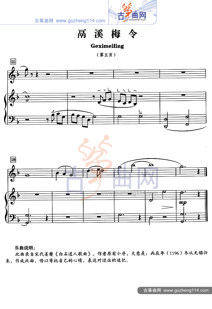 鬲溪梅令(五线谱)