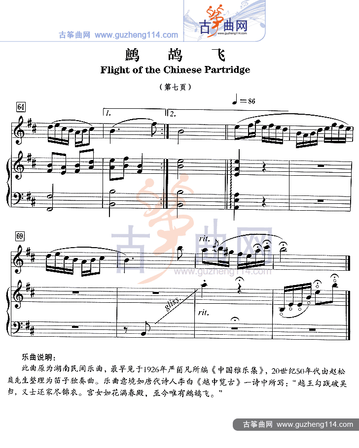 鹧鸪飞(五线谱)