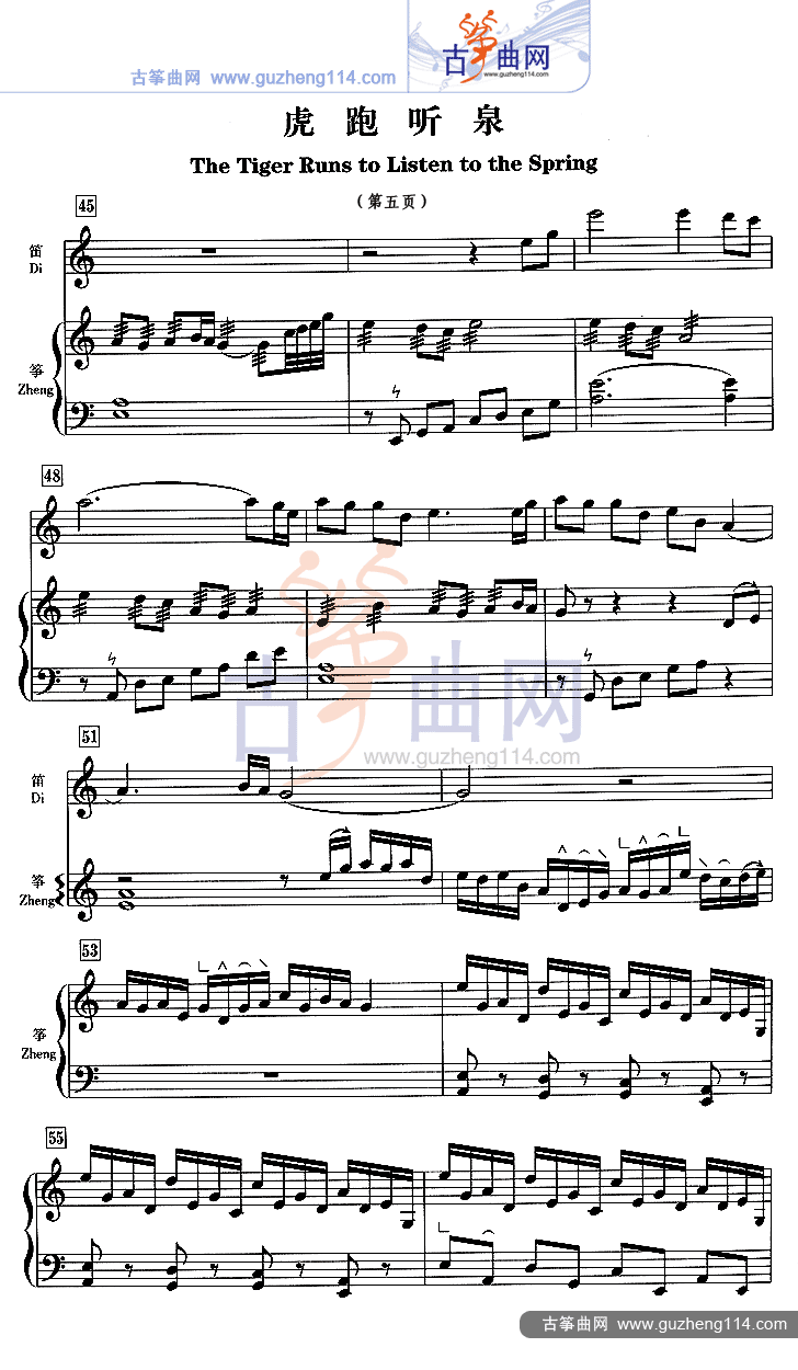 虎跑听泉(五线谱)